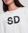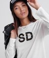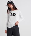 Błyszcząca damska bluzka Superdry z długim rękawem i nadrukiem. Ta błyszcząca bluzka ma teksturowane logo Superdry na piersi oraz metkę z logo Superdry na obszyciu. Załóż ją do jeansów i wysokich butów, aby stworzyć swobodną stylizację na co dzień.