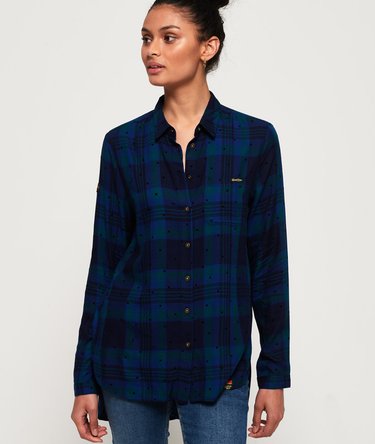 Damska koszula Superdry Frankie. Ta lekka koszula to niezbędny element garderoby w tym sezonie. Jest zapinana na guziki na całej długości, ma też mankiety na guziki. Dobierz do niej swoje ulubione jeansy i wysokie buty, aby stworzyć modną w tym sezonie stylizację.