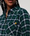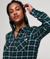 Lekka damska koszula Superdry Seersucker. Ta lekka koszula z długim rękawem ma dwie kieszenie na piersiach, główne zapięcie na guziki i dłuższe obszycie z tyłu. Jej wykończenie stanowi metka z logo Superdry na obszyciu oraz metalowa naszywką z logo Superdry na jednej kieszonce. Stwórz warstwową stylizację z jednolitym T-shirtem, jeansami skinny i wysokimi butami, aby świetnie wyglądać w tym sezonie.