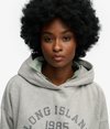 • Kaptur z prążkowanymi wykończeniami i opuszczonymi rękawami