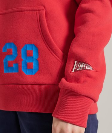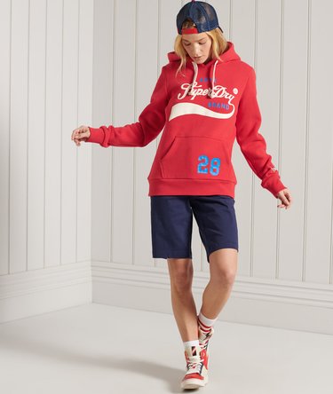W tym sezonie odśwież swoją klasyczną garderobę dzięki wkładanej przez głowę bluzie Collegiate Cali z kapturem ściąganym sznurkiem, obszyciem i rękawami wykończonymi ściągaczem, teksturowanym nadrukiem i flokowanymi detalami.