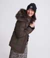 Damska puchowa kurtka premium Superdry Trophy Alps. Ta kurtka z naszej kolekcji premium ma wypełnienie kaczym puchem w stosunku 90/10, zapięcie na zamek i przetyczki, dwie przednie kieszenie na zamek, otwory wentylacyjne pod pachami, ściągany sznurkiem pas, kaptur i obszycie, mankiety wykończone ściągaczami, odpinany kaptur oraz regulowane wykończenie ze sztucznego futra. Całości dopełnia metalowe logo Superdry na jednym z rękawów, a na drugim naszywka z logo Superdry.