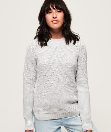 Damski sweter o splocie w romby Superdry Hennie. W tym sezonie dodaj do swojej kolekcji sweter o splocie w romby Hennie. Sweter ma splot w romby z przodu, z tyłu i na górze rękawów oraz dekolt, rękawy i obszycie ze ściągaczem. Ponadto został wykończony metką z logo Superdry na obszyciu.