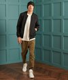 Męska bomberka Superdry Surplus Goods Flyweight. Ta niezwykle lekka bomberka to idealny element garderoby na okres przejściowy. Ma charakterystyczne elementy bomberki, w tym ściągacz przy kołnierzu, elastyczne obszycie i mankiety oraz dwie kieszenie zapinane na zamek. Bomberka Surplus Goods ma również otwory wentylacyjne pod pachami, teksturowane panele boczne i jest wykończona naszywką z logo na rękawie. Wewnątrz kurtka ma podszewkę na całości, podszewkę z siateczki na korpusie oraz pojedynczą kieszeń.