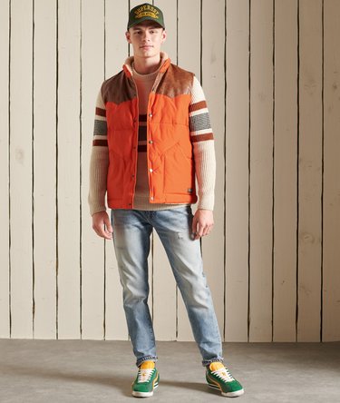 Klasyczny fason bezrękawnika w nowej odsłonie. Skórzany bezrękawnik Mountain Mix ma główne zapięcie na zatrzaski, dwie otwarte kieszenie, skórzany górny panel wykonany ze skóry wołowej oraz kołnierz z podszewką z kożuszka. Będzie świetnie wyglądać na dzianinowym swetrze lub bluzie z okrągłym dekoltem.