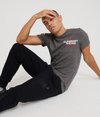 Męskie cieniowane spodnie dresowe Superdry ze wstawkami z taśmy i Vintage Logo. Te spodnie dresowe są ściągane sznurkiem w pasie i mają wykończone ściągaczami nogawki oraz paski z logo Superdry po obu stronach. Całości dopełniają dwie przednie kieszenie, jedna tylna kieszeń oraz teksturowane logo Superdry z przodu jednej z nogawek. Załóż je do klasycznego T-shirtu, aby stworzyć swobodną stylizację.