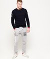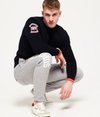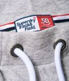 Męskie lekkie spodnie dresowe Superdry Track & Field. Te wygodne, lekkie spodnie dresowe są regulowane grubym sznurkiem, mają dwie przednie kieszenie i jedną kieszeń tylną, elastyczne nogawki wykończone ściągaczami oraz nadruk logo Superdry Track & Field na obu nogawkach. Spodnie dresowe są wykończone metką z logo Vintage Superdry na tylnej kieszeni.