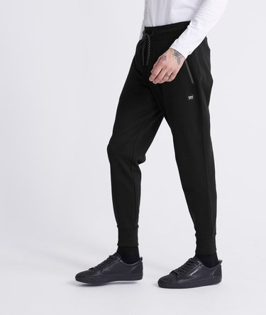 Męskie spodnie dresowe Superdry Collective z dzianiny loopback. W tym sezonie dodaj do swojej kolekcji spodnie dresowe Collective z paskiem ściąganym sznurkiem, nogawkami i paskiem wykończonymi ściągaczem oraz dwiema przednimi kieszeniami na zamek. Ich wykończenie stanowi naszywka z logo Superdry na jednej z nogawek. Idealnie pasują do klasycznego T-shirtu, tworząc swobodną stylizację.